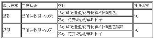 此外,本期產品還增加了特殊類目的逆向入口時間。主要是由于伴隨交易商品種類越來越多,部分商品并非在交易成功后的15天內就能發現商品好壞,比如:花苗種子這類商品,本期將花苗種子類目的售后入口開放到確認收貨后的90天。