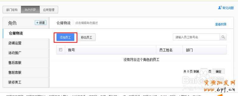 4.保存后,會出現這樣一個對話框,然后選擇角色管理,點擊左下方有個裝修美工,再點擊查看/編輯子賬號