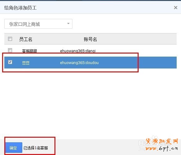 6.在出現的對話框就可以出現可選擇的員工,選擇你要授權的裝修美工即可