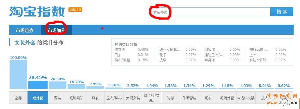 在淘寶指數搜索關鍵詞后,點擊市場細分,就可以看到了。