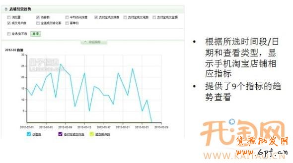 2、“按天流量分析”提供手機(jī)淘寶店鋪wap&客戶(hù)端訪(fǎng)問(wèn)的流量數(shù)據(jù):分天的流量趨勢(shì)&流量對(duì)比數(shù)據(jù)。