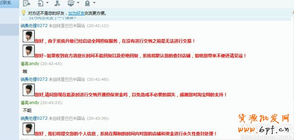 剛開淘寶自然不會也沒有繳納消費保障險,這個是淘寶上自愿項目,不繳納也不會影響買家跟賣家的交易活動的,但新手急于想賣商品加上對淘寶一些細節(jié)的不了解,自然想去繳納著消費保障險來完成自己的商品銷售,就在這時有位冒充淘寶網(wǎng)站客服的發(fā)消息給你,說你的銷售不能正常進行,原因是你沒有繳納這消費保障險