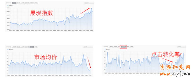 案例:關(guān)鍵詞近期轉(zhuǎn)化下降,花費(fèi)上升,點(diǎn)擊率持續(xù)下降(關(guān)鍵詞排名前5) 。但是,從行業(yè)情況看,關(guān)鍵詞行業(yè)搜索量上升,點(diǎn)擊率轉(zhuǎn)化率上升,市場(chǎng)均價(jià)下降。