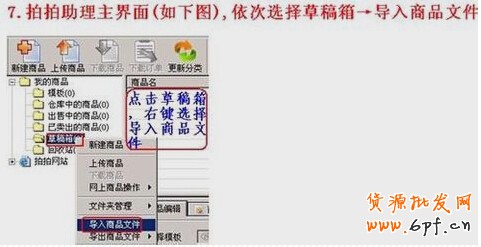 7、依次選擇草稿箱,導入商品