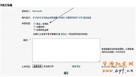 然后,您再用自己的另外小號登錄,自己舉報自己的寶貝。比如你是刷信譽,就舉報出售奧運商品,那么,小二當然會判定舉報無效!