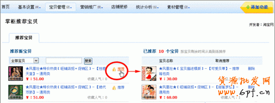3、選擇你想推薦的產(chǎn)品,點(diǎn)擊推薦;當(dāng)然也可以取消已經(jīng)推薦的寶貝,點(diǎn)擊右側(cè)的“×”即可,非常簡(jiǎn)單吧;