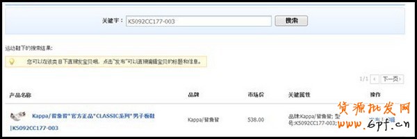 1.1.3如能搜索到對應的產(chǎn)品信息,請點擊產(chǎn)品后面的“發(fā)布”按鈕就會進入商品的發(fā)布頁面。