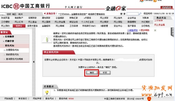 1、登錄工行網(wǎng)上銀行,點(diǎn)擊【繳費(fèi)站】——【委托代扣】——【我的委托代扣】,點(diǎn)擊【終止】;