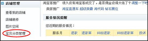 進入“我的淘寶”后臺,打開您的“寶貝分類管理”
