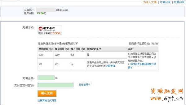 支付寶卡通充值流程(以招商銀行卡通為例)
