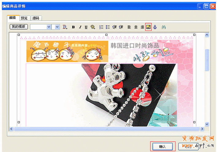 2、若您是在發(fā)布新商品時(shí),您可在“商品信息編輯>商品詳情描述”,點(diǎn)擊“插入/編輯圖象”,在“源文件”欄輸入圖片鏈接地址即可(注:所輸入的圖片鏈接地址為網(wǎng)絡(luò)地址才有效,請不要提供您電腦上的圖片鏈接地址);也可點(diǎn)擊“插入相冊圖片”,將您的QQ相冊圖片直接導(dǎo)入。