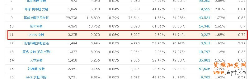 只要搜索“女鞋”,按轉化率排序,然后往下拉就可以找到。簡單說下我的思路和判斷方法:首先,搜索的詞最好選擇一級類目詞或者一些功能性的詞,原因是二級類目詞的話基數小。然后,要選擇競爭強度大于1的詞,低于1就屬于競爭大了,而且搜索指數不能低于3000,過低的話市場空間就小了,也難賺錢。
