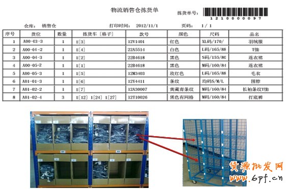 揀貨員:推著揀貨車,按照揀貨單上貨位指導進行揀貨。揀貨時,每一個貨架對應多個訂單。