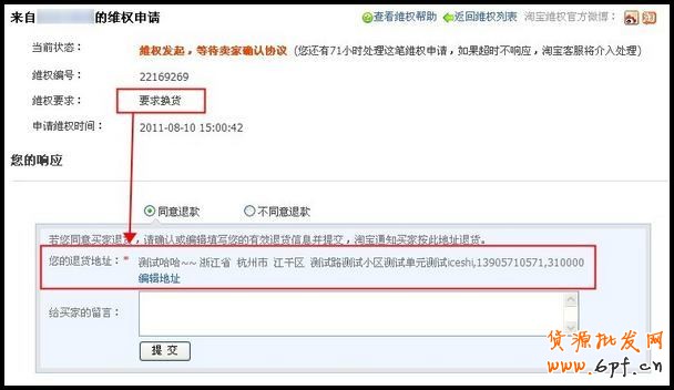 點(diǎn)擊頁面上的“同意退款”來同意維權(quán)協(xié)議 ,若賣家設(shè)置過退貨地址,系統(tǒng)會默認(rèn)選擇,若未設(shè)置,可以直接填寫。同意給買家換貨后,系統(tǒng)會給予雙方10天的時間進(jìn)行換貨或者維修的處理,超時這個時間買家沒有撤銷維權(quán),淘寶客服會在2個工作日內(nèi)介入處理。
