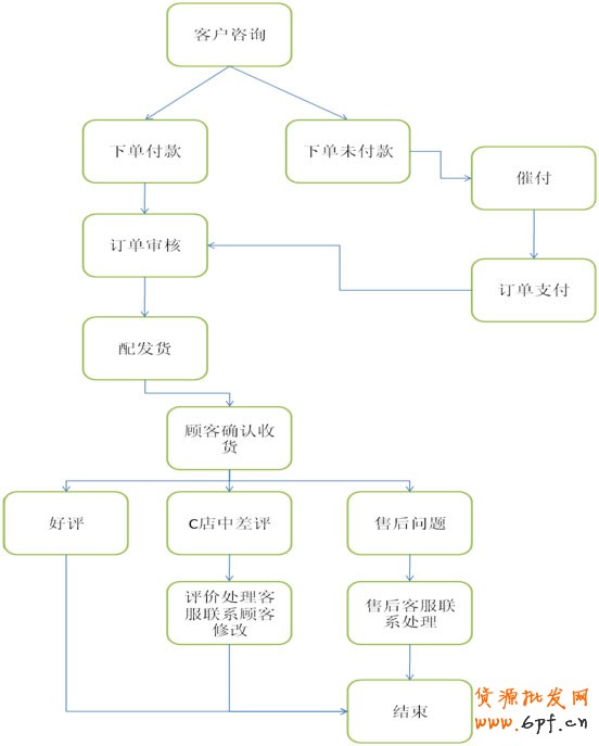 一個(gè)顧客在店鋪購(gòu)物的經(jīng)歷簡(jiǎn)單的來說可以用上圖來概括,但在店鋪中與顧客接觸的卻分為了售前、售中、售后三個(gè)工種的客服人員。