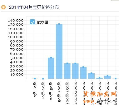 上圖是2014年04月份的寶貝銷量價格柱形圖