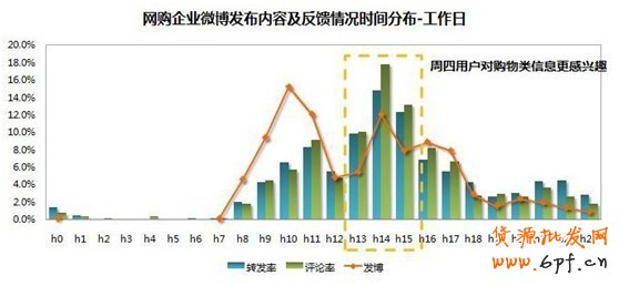 企業應把握這兩個時段:但這兩個高峰期間,企業的發微博量均較低,潛力有待開發。