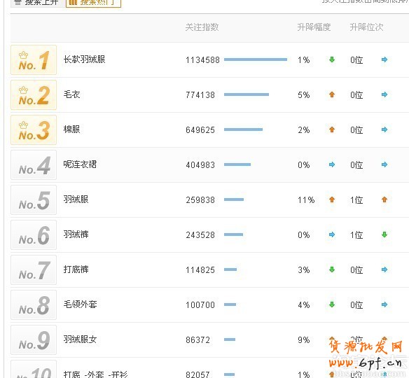 我們再點你開店的類別榜單,點擊“完整榜單”,比如說“女裝”,這些關鍵字,大家就可以按上面的方法來運用!