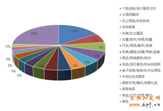 從2011年和2012年的數(shù)據(jù)來看,定制類目的交易總額和PV、UV在增長,顯然買家對定制的搜索和興趣在增加,但定制商品占全網(wǎng)比例約為1%。目前,淘寶帶有“定制、訂制、定做、訂做”的商品數(shù)達到萬件,122個葉子類目下定制商品數(shù)在1萬件以上。從下面的定制商品類目占比圖來看,3C數(shù)碼配件、床上用品占7%,個性定制占到了16%。從目前定制商品賣家來看,一部分有潛在定制能力的賣家仍未發(fā)現(xiàn)商機,而已經(jīng)在做定制的賣家還不夠成熟,商品品類和規(guī)模遠遠無法滿足消費者的多樣化、個性化需求。綜上可看出,無論在消費力,還是賣產(chǎn)家發(fā)展空間上,定制市場都存在很大的潛力。