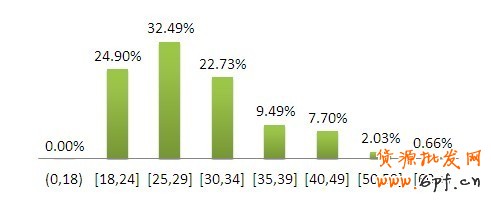 消費者追求個性、獨一無二的需求越來越強烈,定制的主力人群還是集中在少男少女。從淘寶定制類目的數(shù)據(jù)來看,女性的消費比較旺盛,達到53.9%,男性相對較弱,達46.1%。而整個定制類目的消費人群年齡段跨度大,集中在18~24/25~29/30~34。