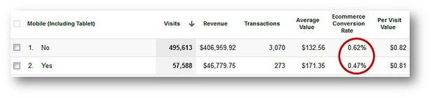 上月Conversion Conference的參會者表示他們有1/4的網(wǎng)站流量來自移動設備,但移動設備的轉化率只有非移動設備的一半。