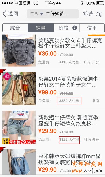 以關鍵詞“牛仔短褲 夏 女”為例,下圖是PC端銷量排名情況(按收貨排序),可以看到本款寶貝有2559人收貨,照道理應該出現在第1頁,但是未出現。