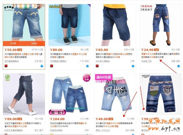 這里我的一句總結(jié)就是不管黑貓白貓能抓得到老鼠就是好貓.我們不管誰的標(biāo)題好與壞他能賣的出銷量,而且銷量少的情況下就能排前面的寶貝,然后把他的標(biāo)題對比下,我們來第二部實操下。我們先去搜索男童牛仔七分褲