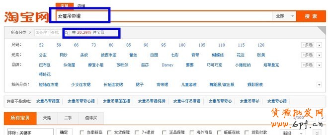 好了,已經訂好了前綴關鍵詞,那我們繼續來尋找把!一般標題前綴后面都是產品屬性以及名稱詞的組合,可能組合方式不同,但我就拿這個當作案例把!例如:我的連衣裙是 女童的吊帶/背心裙。那我們就要尋找這兩個產品詞相關的性價比最高的關鍵詞了!如下圖:我把這款連衣裙的兩種名稱,分別進行的對比,女童吊帶裙和女童背心裙,我們發現 女童吊帶裙的搜索指數比女童背心裙要搞出900多的搜索量,那我們還是按照上面的方法,到淘寶首頁上搜一下關鍵詞 看看得出結果把!