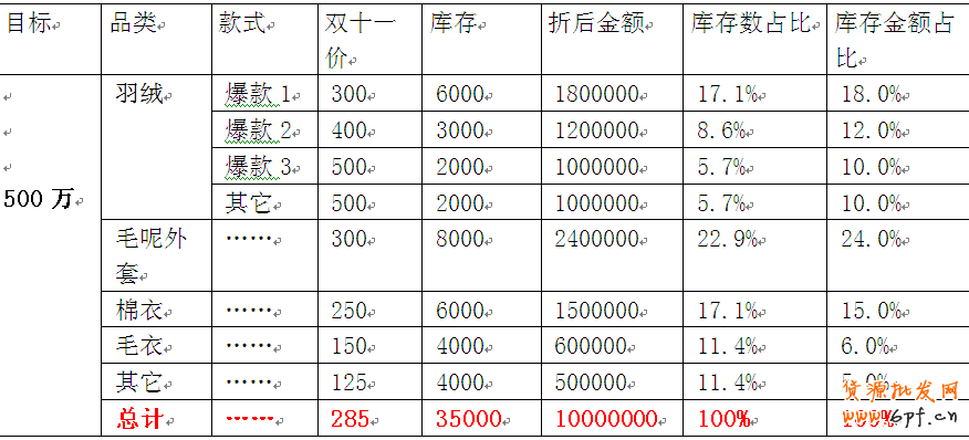 在雙十一貨品規劃的時候,要從兩部分來考慮,一是在售商品的數量和品類,二是上新商品的數量和品類。不管是在售和即將上新的商品,總數有多少,哪些是重點品類商品,都要有具體的規劃。