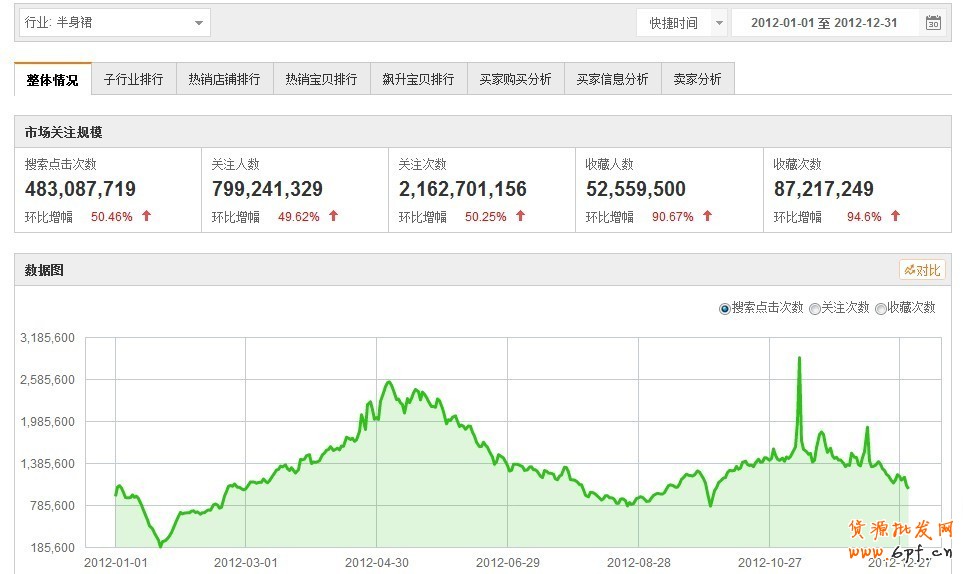 好的車手都不是盲目的,經驗是不變的,但數據是變化的,不過也有規律可循,好的經驗加nice的數據,踩準節奏,才能步步為營,百戰百勝。以下是半身裙類目2012年的一個大盤時間節奏,所謂工欲善其事,必先利其器。