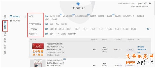 無線鉆展的位置的位置在哪?登錄鉆展后臺-點擊左邊導航欄展位超市-標簽處找到并點擊無線淘寶,在展位信息處出現的就是無線鉆展的展位了,這個無線鉆展的展位一共有5個。
