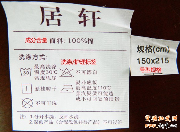 合格的家紡吊牌和耐久性標(biāo)簽參考以下圖示: