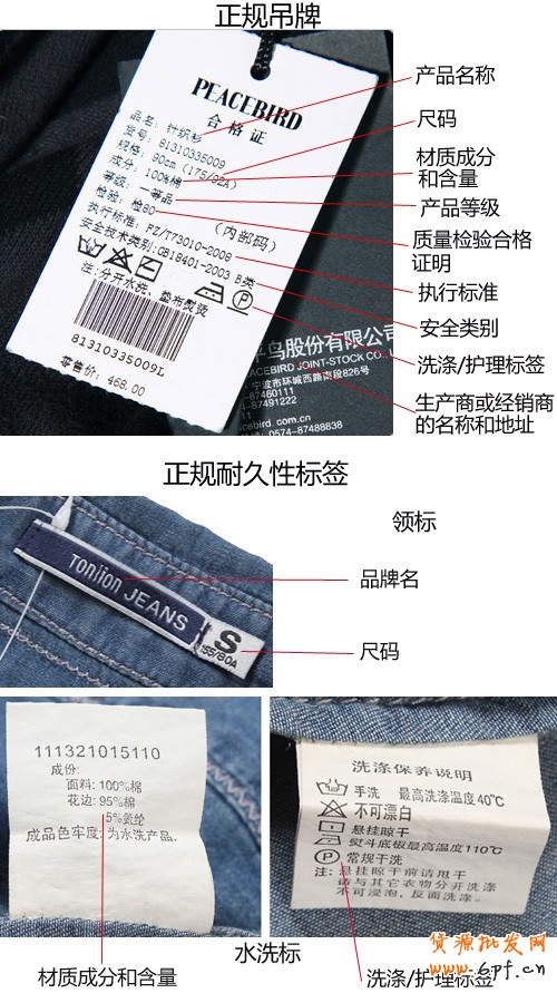 合格的服飾吊牌和耐久性標(biāo)簽參考以下圖示: