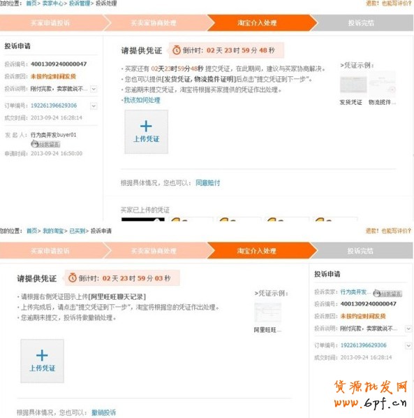 同時,在舉證期,您也可以根據舉證事例將憑證上傳至淘寶,便于賣家以及淘寶對于投訴問題的判斷。