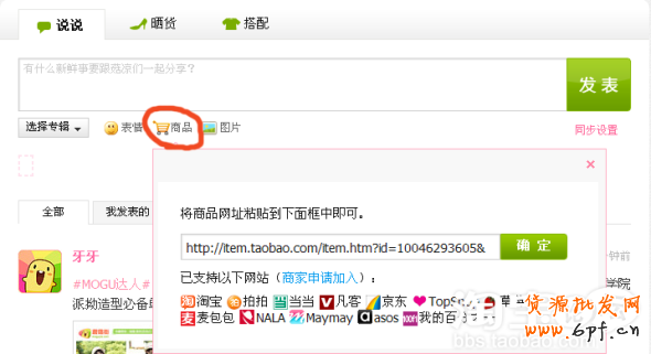 蘑菇街曬貨一般是兩種方式,說說、回應:點擊下面商品就可以把寶貝的鏈接填進去,確定蘑菇街就可以自己獲取寶貝信息,然后再在上面寫一些有助于宣傳的話語就可以發表了。