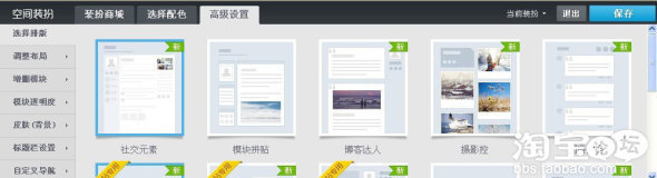 創建以后,會有下面四種模塊供我們選擇,這里我們為的是加入淘寶店鋪的寶貝圖片,所以我們只選用大圖模塊,如果您想讓自己空間更加生動,可選擇flash動態模塊!