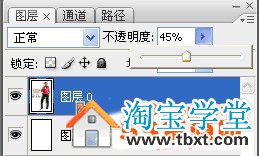設置好了后,直接按Delete刪除剛才選中的背景部分,這樣人和背景就分離開來了,是不是簡單實用吧!模特素材處理好了,下面我們要把文字效果模仿出來,為了方便模仿,我們要把廣告效果圖片的透明度調低點,容易對照,不透明度設置為45%效果如下:
