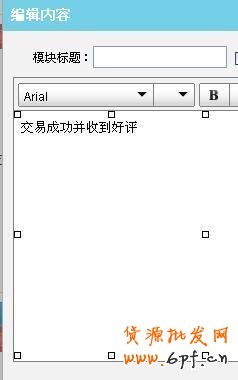 3、粘貼如下代碼(紅色部分,“交易成功并收到好評”為示例文字,后面會修改此文字)略去從Frontpage里編輯源代碼步驟,因為這個稍復雜。如果你對html源碼很精通,還可以打造出更漂亮的效果,比如加上寶貝圖片也是可以滾動的,鑒于此模塊寬度有限,就僅簡單弄上文字。愿旺鋪開發設計師設計一個可以自動調用的接口來實現這個效果就更好了。