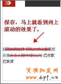 9、點保存,馬上就能看到向上滾動的效果,點擊寶貝名稱,會自動跳轉到寶貝詳情頁的哦。