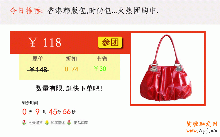 現(xiàn)在把你店鋪要參加淘寶限時(shí)折扣的寶貝主圖放進(jìn)來,可以用QQ截屏再ctrl+v就放進(jìn)來了,注意截屏的時(shí)候,要截成正方形哦,因?yàn)檫@個(gè)方框基本是正方形的,所以為了方便美觀,一定要仔細(xì)截好屏.然后用工具條的那個(gè)移動工具把我們的寶貝圖片放在正方形框內(nèi),可以用ctrl+t快捷鍵來調(diào)整大小記得按回車,調(diào)好了,看下圖,我在在百度里找了一個(gè)包包圖片入進(jìn)來了,你們看.