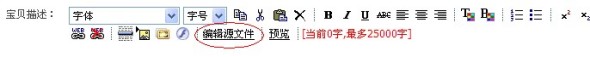 2.在發布寶貝頁面的編輯器中,點擊“編輯源文件”