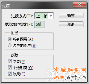 背景圖層新建好之后,動畫(幀)窗口也同時新建了一個幀,但是我們需要60秒,所以需要60個幀,所以我們要新建60個幀,那幀又該怎么新建呢,大家可以看到在動畫幀的窗口下面可以看到一排按鈕,從右邊往左數(shù),第二個就是復(fù)制所選幀,我們可以對第一鎮(zhèn)進(jìn)行復(fù)制從而獲得更多的幀,大家會問,難道要60個幀就要點(diǎn)60下嗎?當(dāng)然不是,這里我們有一個更簡單的方法,那就是利用過渡動畫幀按鈕,大家會發(fā)現(xiàn),當(dāng)點(diǎn)擊復(fù)制所選幀按鈕之新建一個新的幀之后,原本不能使用的按鈕都可以使用了,在復(fù)制所選幀按鈕左邊就是有一個像一串珠子的按鈕,那就是過渡動畫幀按鈕,我們只要點(diǎn)擊這個按鈕就可以同時新建很多的幀,因?yàn)槲覀円呀?jīng)有兩個幀了,所以接下來我們只要新建58個幀就可以了,對了,差點(diǎn)忘了,我們在新建過渡幀之前還有一個很重要的步驟哦,那就是調(diào)整幀的延長時間和幀的循環(huán)選項,如果在新建好所以幀之后再來做這步的話,那就要一個幀一個幀的調(diào)整過去了,那就麻煩了,還有要調(diào)整好幀的循環(huán)選項,我們要調(diào)整到永遠(yuǎn),不然的話就會在一定次數(shù)之后停止,而不會一直循環(huán)下去了哦,所以這點(diǎn)很重要哦。