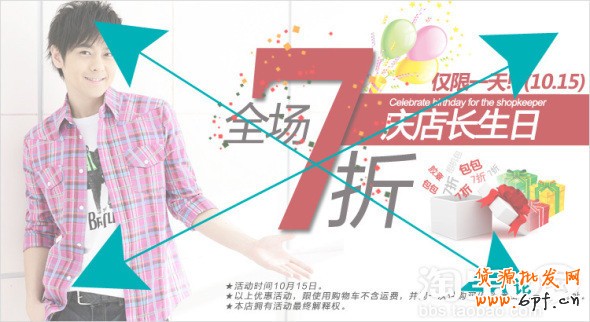 人的視線掃描習慣都是從左到右,從上到下。在一張淘寶促銷海報里在適當的位置,放上一個人物,比放商品,更容易吸引人視線,但是需要記住一點,不能讓人物圖搶了風頭,你要明白你要突出是促銷信息(商品+人物圖除外)。如果是特賣某款商品,可以嘗試用人物+商品的圖片,效果更上一層樓。