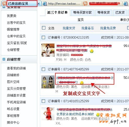 7、打開“我是賣家”--“已賣出寶貝”,復制已賣出寶貝的文字信息(此信息是自動帶超鏈接的)在上圖的狀態(tài)下,修改上面的文字,粘貼到此框里。