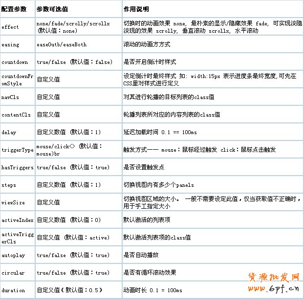 首先,針對(duì)不同的效果,需要配置不同的參數(shù),也應(yīng)該采用不同的Html代碼結(jié)構(gòu)。