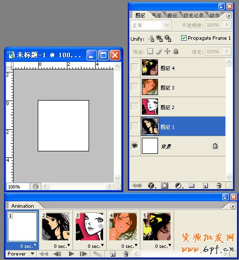 第四步:點擊小三角后選擇Make frames From Layers。就是把每層分布于帖。這里沒有英文的就是中文啦。“從圖層建立帖”這里大家意會吧,因為有的翻譯會不同的。而我是用8.0的漢化包翻9.0的。所以就有的中文有的英文的。