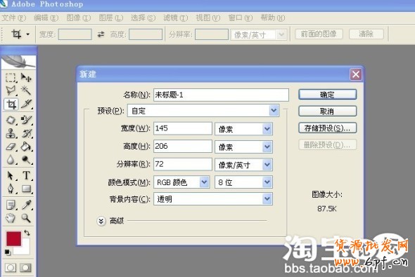 1、選圖片以后打開Adobe PhotoShopCS2,新建一個圖層,建議范圍不要太大,一般為寬度145像素,高度206像素,下面來看一下: