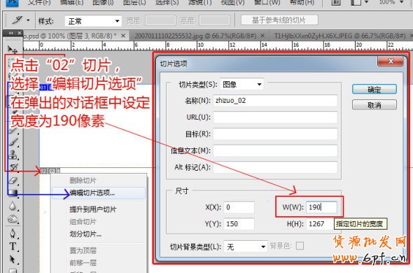 首先我們要在PS里用切片工具設置出店招、左側欄和右側自定義欄的尺寸: