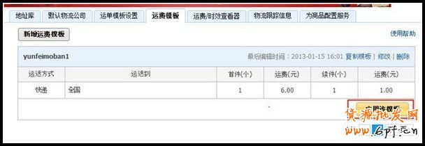 4) 回到商品編輯頁面-“寶貝物流信息”-“選擇運費模板”-“應用模板”,模板設置完成。