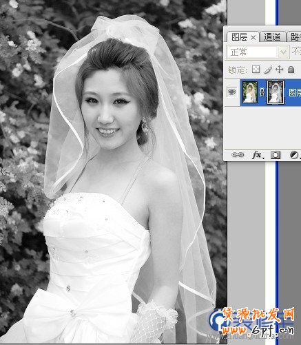 然后在ctrl+v(上面我們Ctrl+V復制過圖層的),把剛才我們復制的圖層粘貼到圖層蒙版中:現在可以看到,圖層蒙版中有了一個和圖層一樣的圖層
